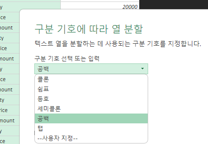 '변환' → '열 분할' → '구분 기호 기준' 선택