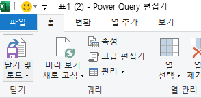 7. 원하는 형태의 데이터가 나왔으니 빠져나간다. '홈' → '닫기 및 로드'