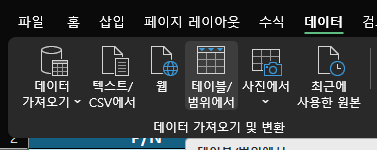 2. 데이터 → 테이블/범위에서, 클릭해서 파워피벗 실행