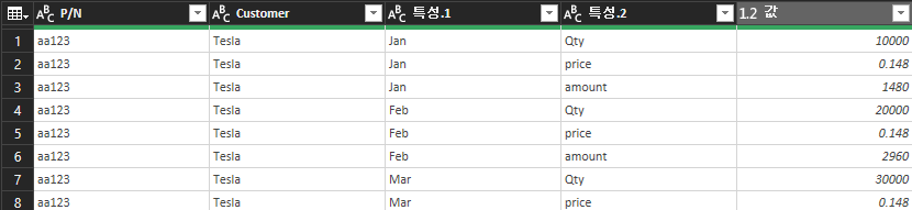 4. 이제 데이터가 세로로 준비되었고, 여기서 '월'과 항목을 분리한다.