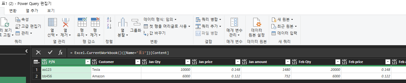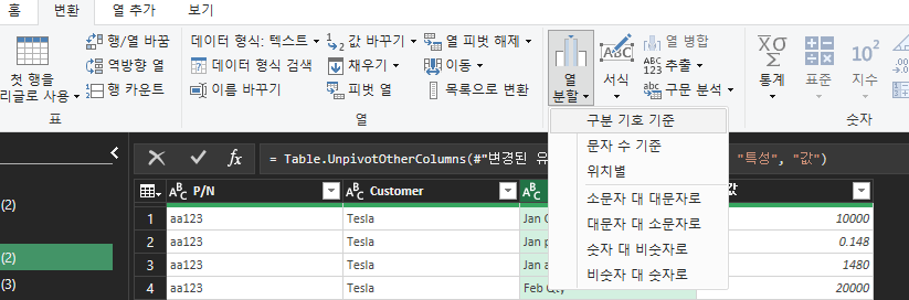 파워쿼리가 데이터 형태를 변경하는데 정말 요긴하다.