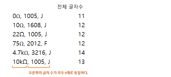 0Ω,10Ω,.. 이런 저항값만 가져오고 싶다. 그런데 글자 수가 일정하지 않아서, 왼쪽부터 문자를 가져오는 LEFT함수를 쓸 수가 없다.