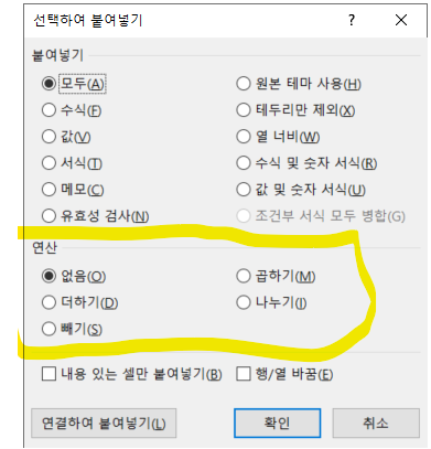 선택하여 붙여넣기의 사칙연산은 쏠쏠하게 도움이 된다.