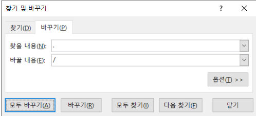 범위를 선택하고 '.'을 '-'이나 '/'로 바꿔주면 이제 날짜로 인식된다.