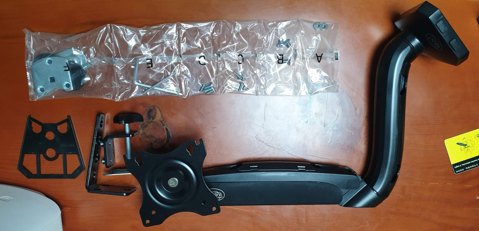 책상에 클램프로 물리고, 모니터에 나사 4개로 고정하면 끝.
