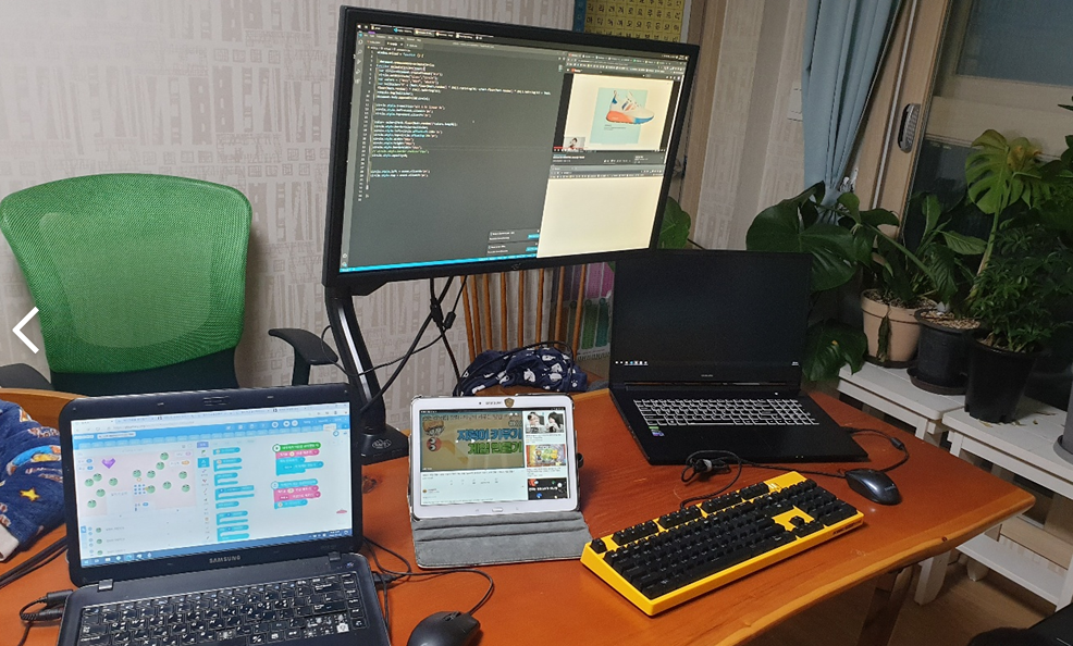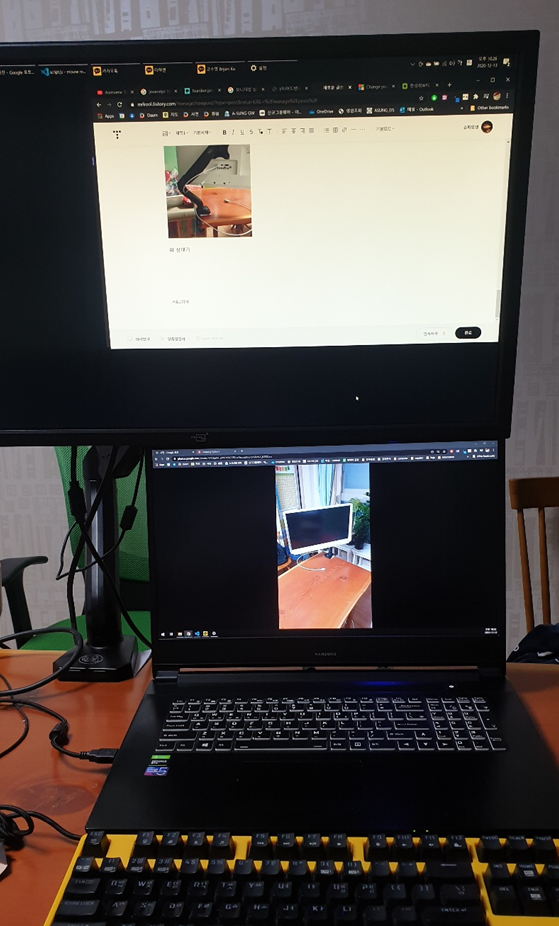 내 노트북과 아들 녀석 노트북 .HDMI에 각각 연결해둬서 각각 사용할 때 좌우로 모니터를 이동해서 볼 수 있게 했다.
