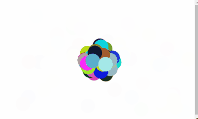 위의 것이 기본적인 구조이고, 저 구조 안에서 공의 개수를 늘리고, 중력값을 주고, 색깔을 변하는 등의 변화를 주면 점점 그럴듯한 그림으로 변해간다.