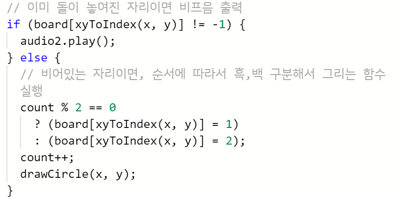 ] 그 자리에 이미 돌이 놓여져 있으면(그 위치의 숫자가 -1이 아니면) 그림이 안그려지게 하고,