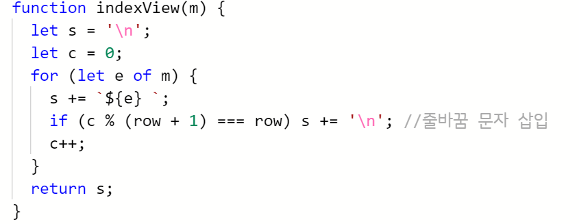 아래와 같이 콘솔창에 눈금열만큼 줄바꿈을 넣어서 실제 바둑판처럼 숫자가 나열되어 보여주게 해준다.