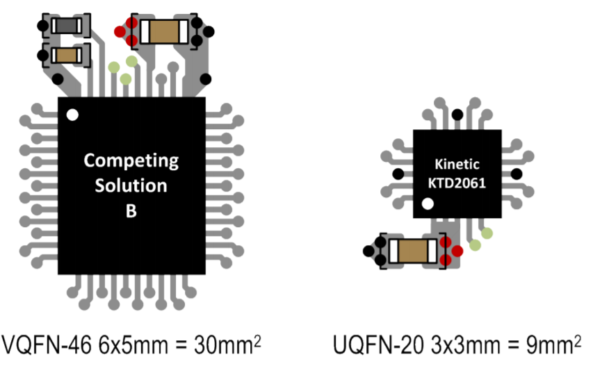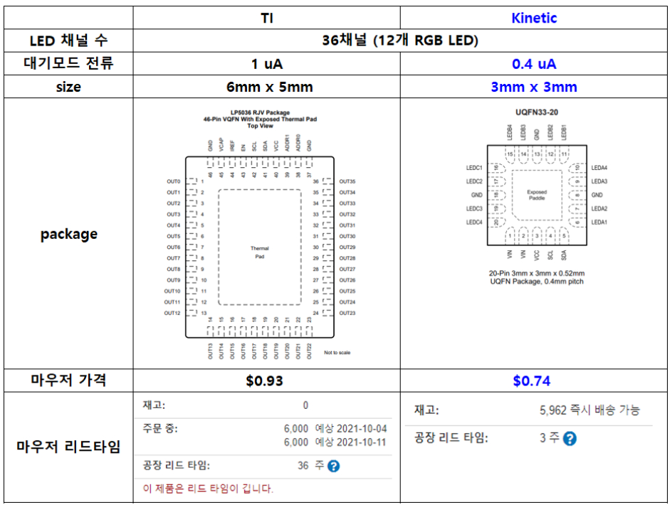 그런데, Kinetic 제품은 구동방식이 달라서 12개의 핀으로 36채널을 컨트롤 합니다. IC 크기가 작습니다. 가격도 낮아집니다.