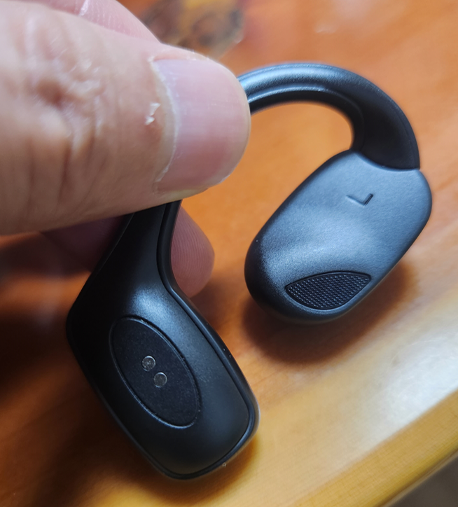 귀에 각각 착용되니까, 일체형 골전도 제품의 와이어가 걸리적 거리는 문제는 없다. 그렇다고 물리적으로 부딪치지 않는 이상, 운동하다가 벗겨질 것 같지도 않다.