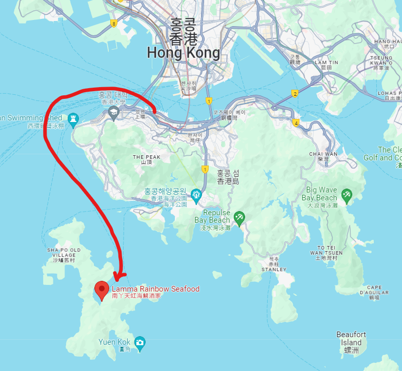 센트럴에서 배를 타면 아래의 코스로 가는건데 짧지 않은 거리다.