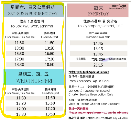저 시간대에 센트럴,침사츄이의 부두에 있다가, 위 사진의 배가 오면 타면 된다.