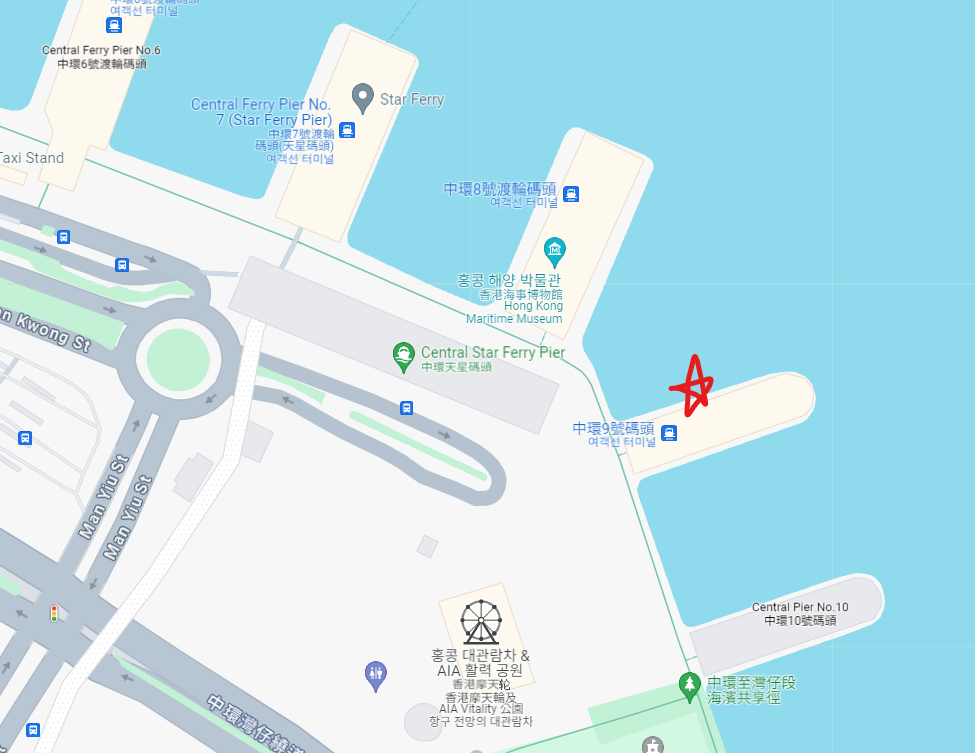 센트럴의 경우, 9번 부두의 빨간색 부근에서 기다리면 된다. (그런데, 배가 정말 오는건가 아닌가 되게 불안하다 ㅎ)